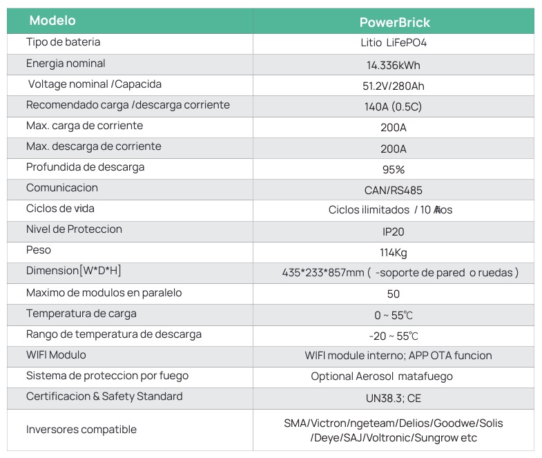 - Capacidad: 14.3kWh (expandible hasta 256kWh con 50 módulos en paralelo)